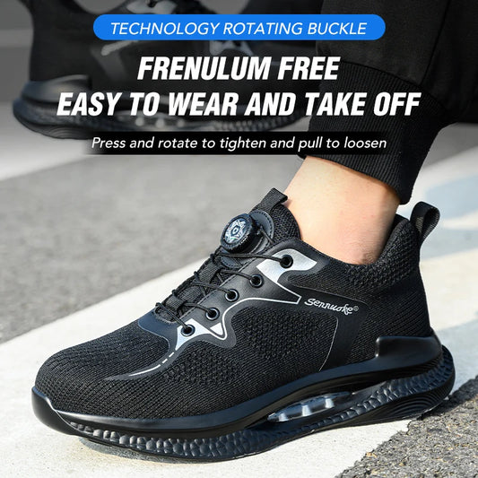 Zapatos de seguridad con punta de acero y hebilla giratoria para hombre, a prueba de pinchazos