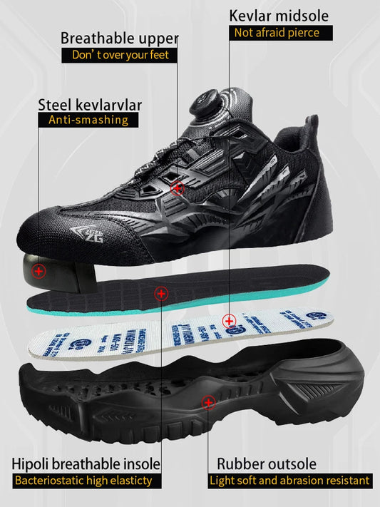 Zapatillas de deporte con punta de acero y botones giratorios para hombre, a la moda, indestructibles