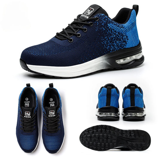 Zapatos de seguridad con punta de acero para hombres y mujeres, cojín de aire, antipinchazos